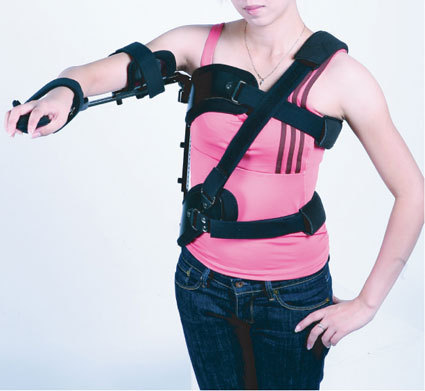 可以根据需求调整肩关节的内收外展角度,使肩关节保持在外展70-90度,肘关节屈曲90度位,并使其免荷,适用于三角肌麻痹、棘上肌腱断裂、肩关节部位骨折、脱位整复后、上肢骨折手术后、臂从神经麻痹,有时也用急性肩周炎。